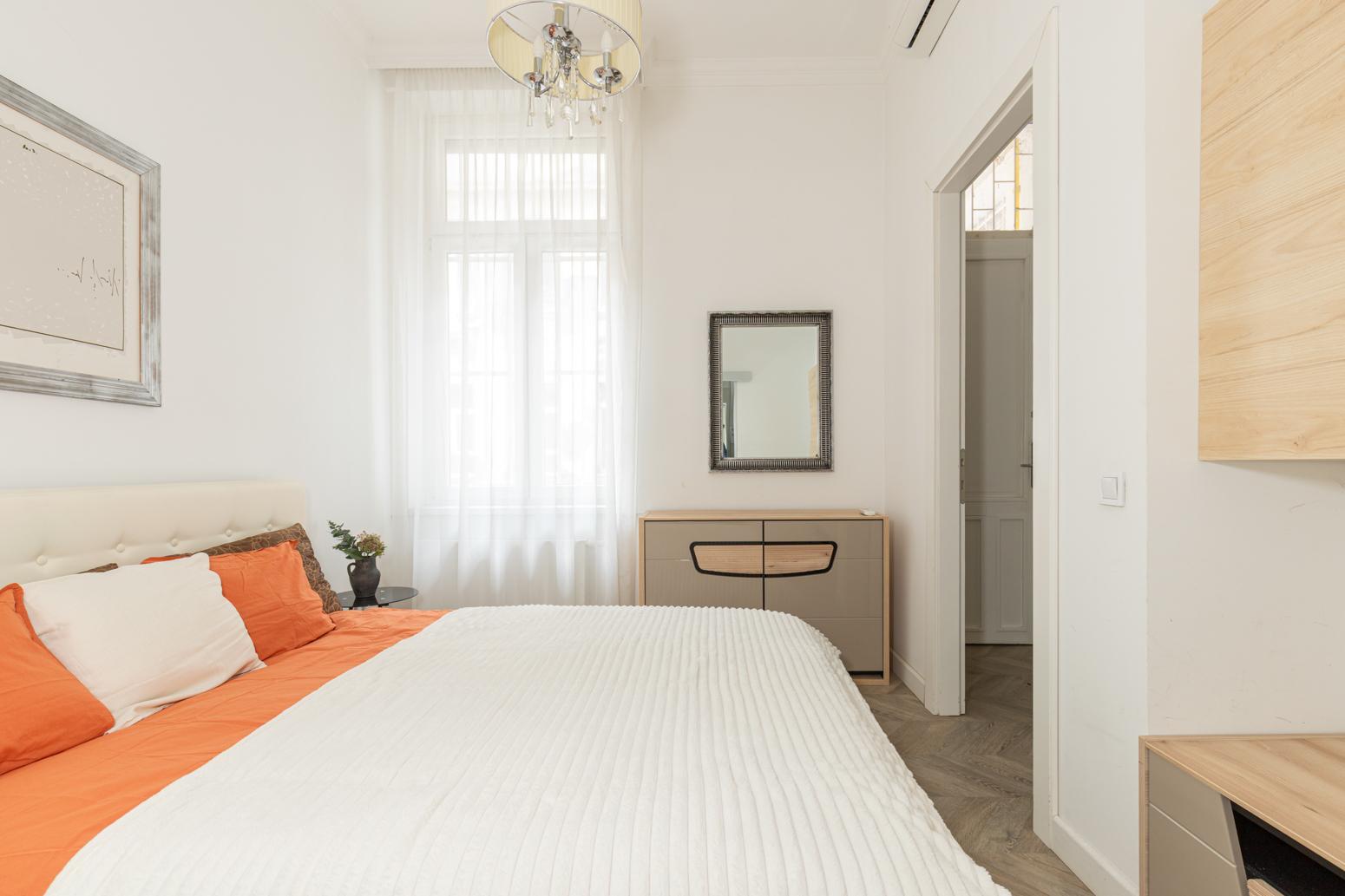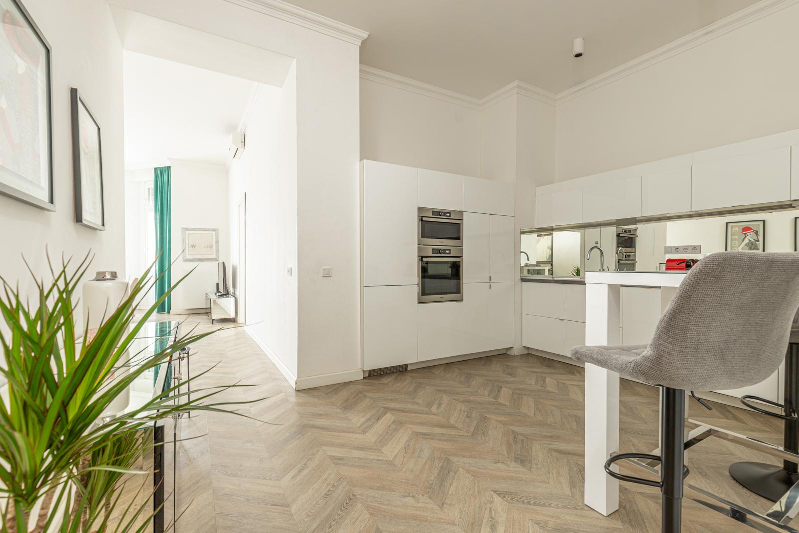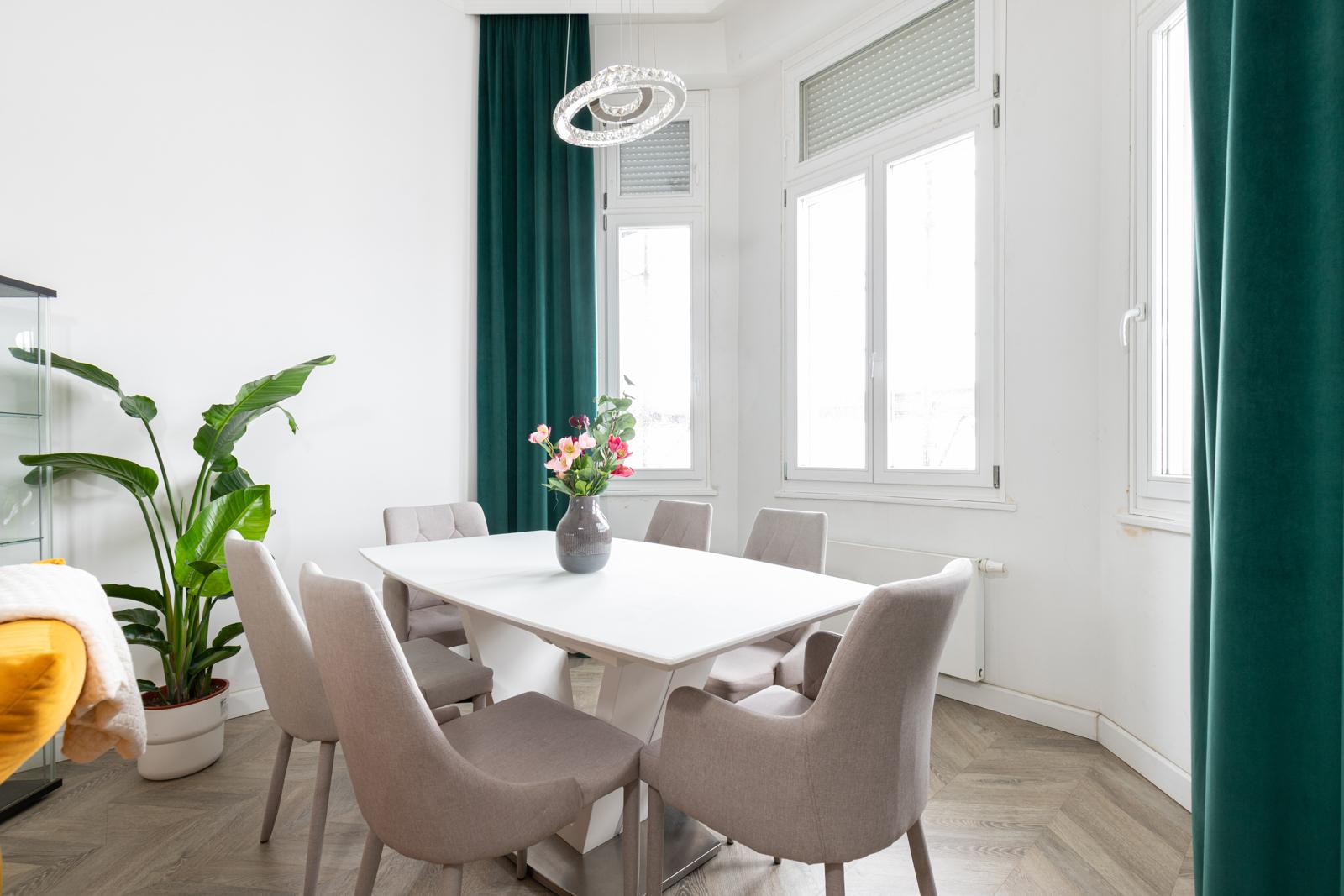 A tastefully renovated apartment for rent in the heart of the city on József Attila út. 90 m2 with a huge panoramic interior balcony. Living room + 2 bedrooms, separate kitchen, 2 bathrooms, separate toilet and laundry room. Recommended for families or couples! Everything is within a minute's reach of the building. Shops, restaurants, the Basilica, Andrássy út, József Nádor Square, the Chain Bridge... If you have any questions, please call! Flexible viewing times!