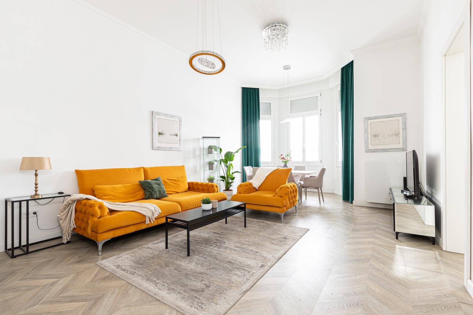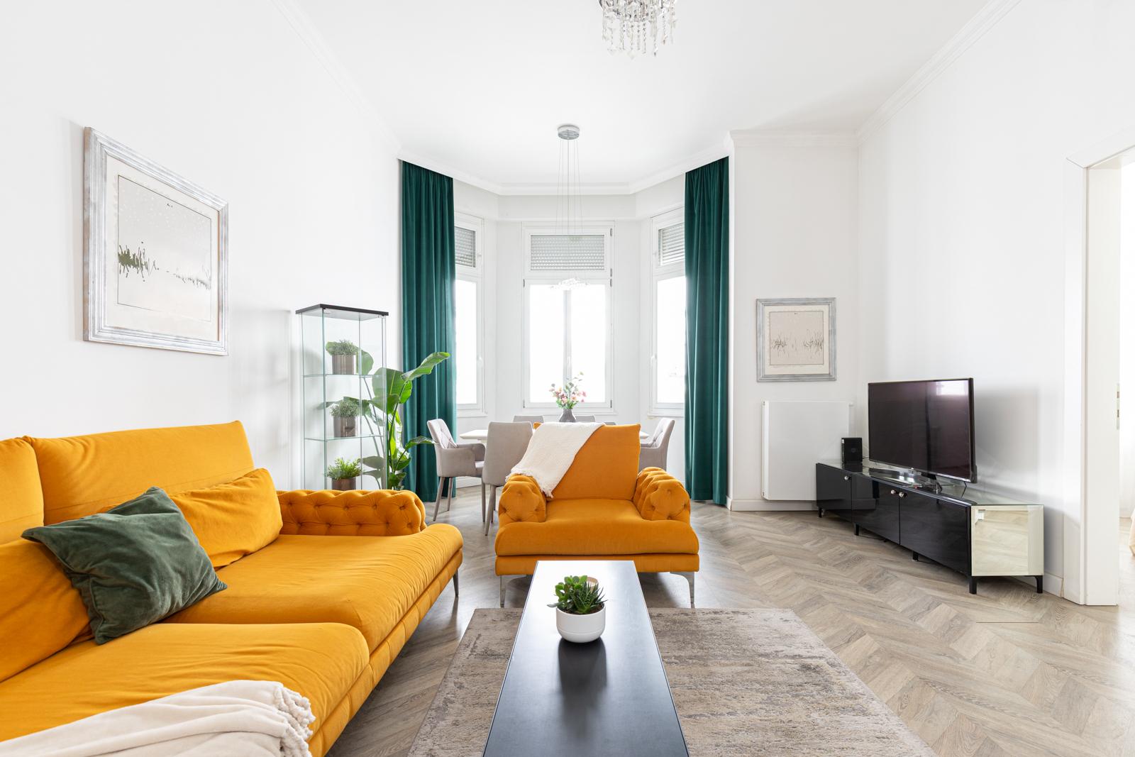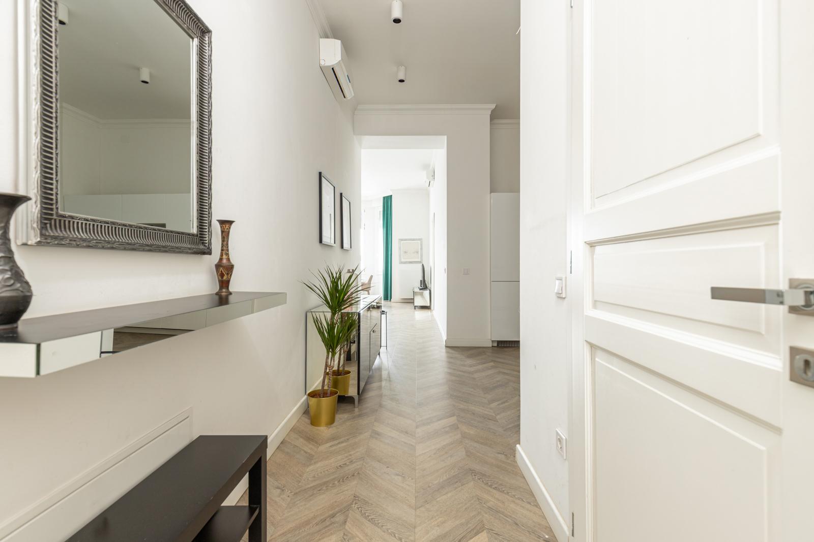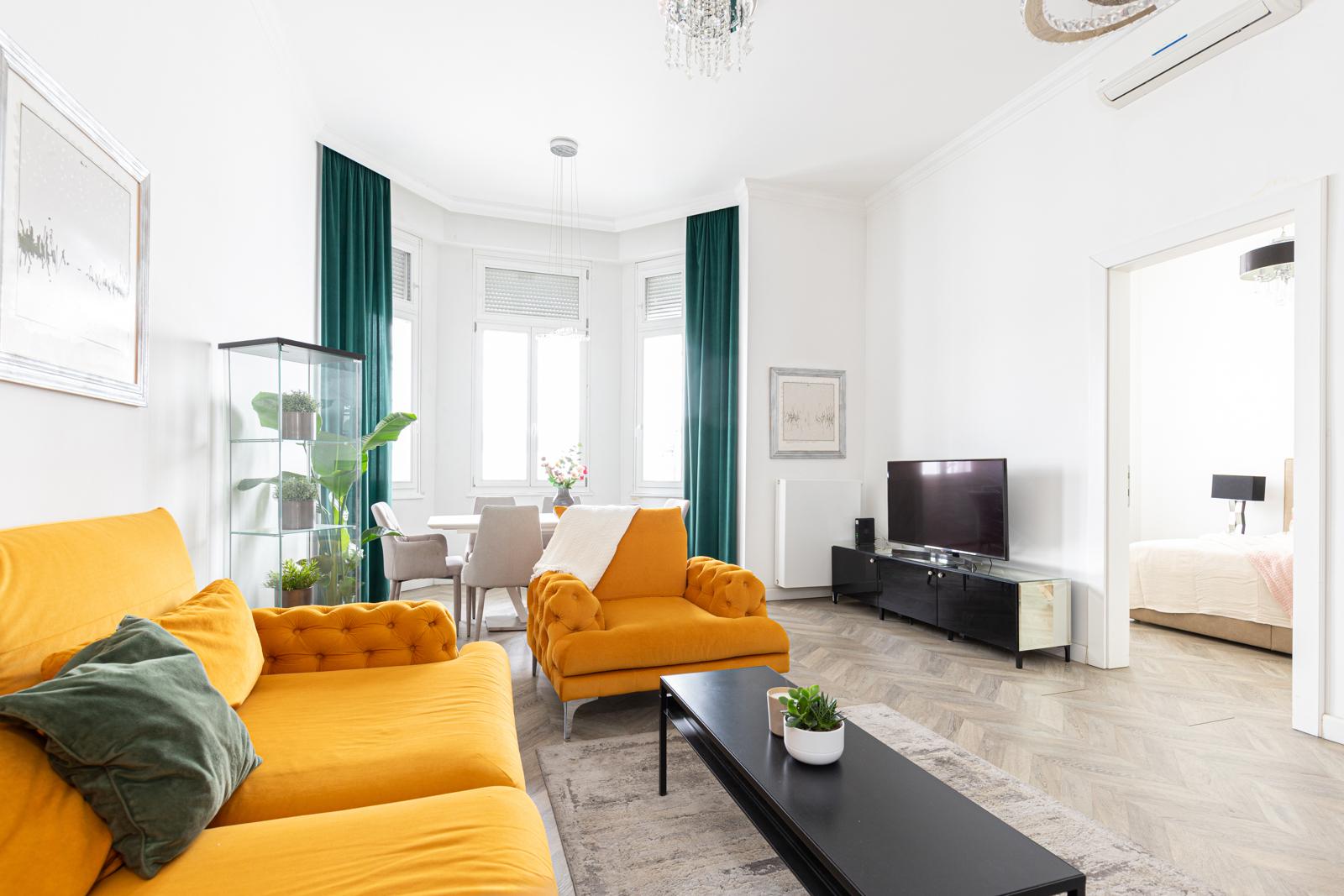 A tastefully renovated apartment for rent in the heart of the city on József Attila út. 90 m2 with a huge panoramic interior balcony. Living room + 2 bedrooms, separate kitchen, 2 bathrooms, separate toilet and laundry room. Recommended for families or couples! Everything is within a minute's reach of the building. Shops, restaurants, the Basilica, Andrássy út, József Nádor Square, the Chain Bridge... If you have any questions, please call! Flexible viewing times!